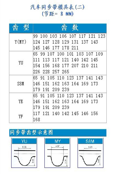 | Specification table of synchronous belt |